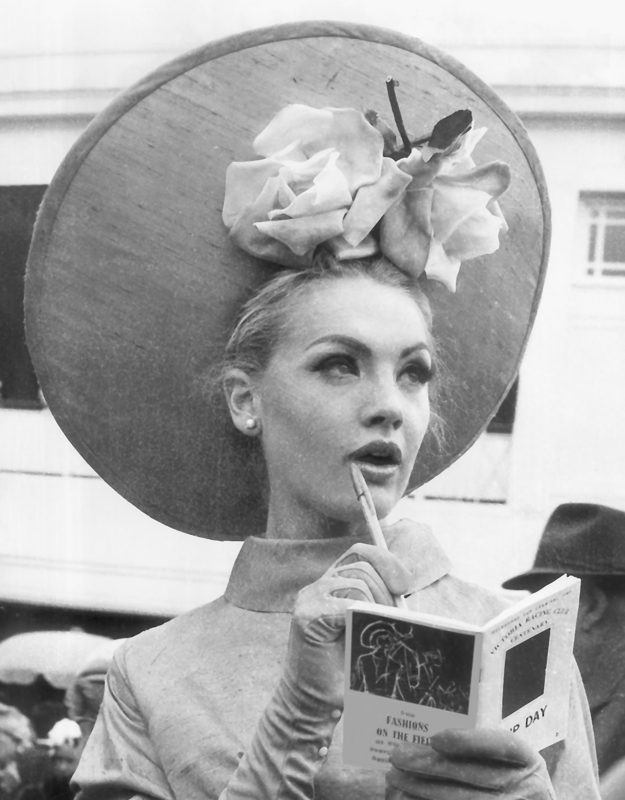 In 1972, Fashions on the Field was replaced by the Race Club’s Fashion Contest, a competition on Final Day for ‘girls who had won contests at race meetings throughout Australia during the year.’ In 1972 and 1975-77, the VRC hosted the ‘Ten Elegant Ladies’ contest while in 1976 TheSun newspaper ran a ‘Pick a Fashion Double’ competition for the most stylish couple. The decade also saw a number of sponsored ‘days’ such as the ‘Polaroid Photo Finish Stakes’, the Bruck Pony Contest (where the prize was a pony or one of 20 pairs of jeans) and in 1979, the Myer Girl of the Day.