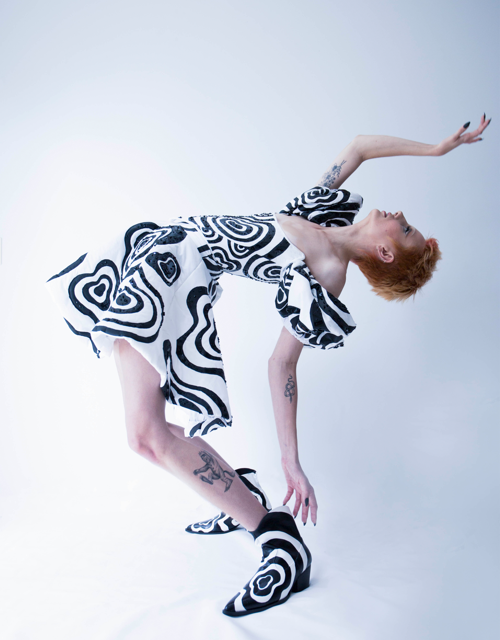 I asked my friend Australian actress, singer and dancer Chelsea Dawson to model the outfit. She was performing in Six The Musical in Australia at the time. I met her when she was doing Shrek The Musical. We hit it off as friends. She knew how creative I was and I didn’t hesitate to ask if she wanted to be part of my Fashions on the Front Lawn experience. She knew my work and showcased the outfit beautifully.
