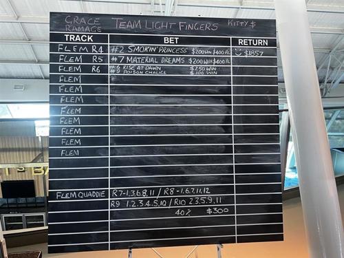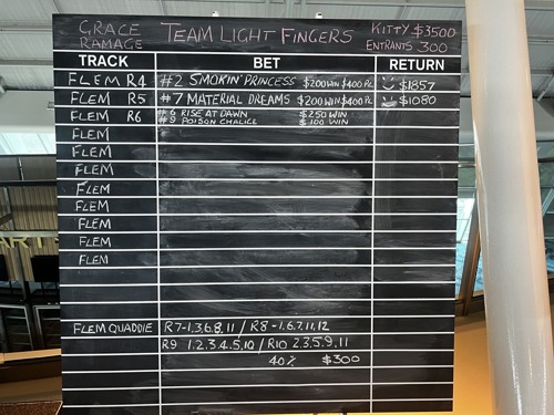 Two races in and Grace is up $1,737 for her team! Solid start to the Punters Club today.