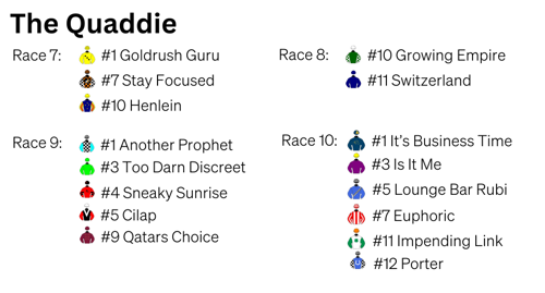 Marc & Grace have locked in their selections for Race 4. Stay tuned for their selections.