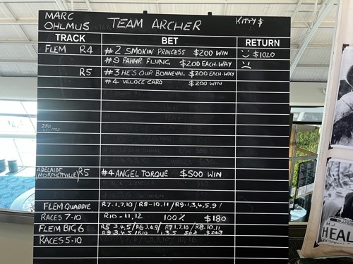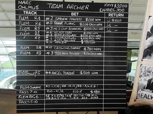Grace gets another win for her team! Her bet of $200 a place in Bendigo on #4 Donation snuck in for a 3rd place returning $860.