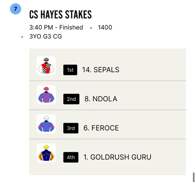 #14 Sepals was too good to run home a clear winner in Race 7 CS Hayes over 1400m.