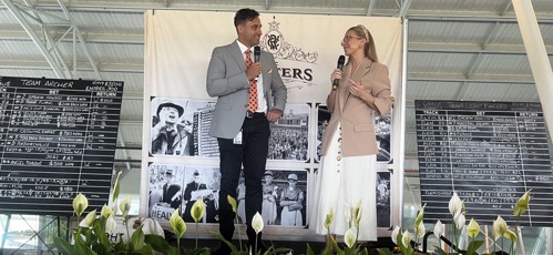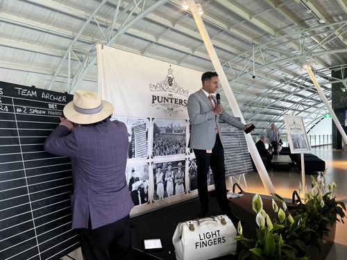 Grace & Marc talking to the room after what has been a a great day of racing. Grace's team had a successful day with a 50% return on their initial investment. A good collect with some solid wins throughout - 4 returns on her bets!