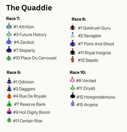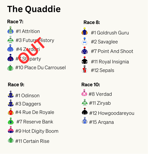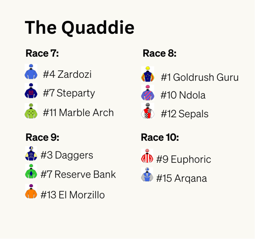 Grace continues to the next leg with Marble Arch part of her three selections in R7. With only 3 horses in the next leg, let's keep the Quaddie running.