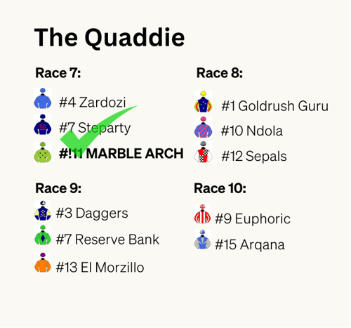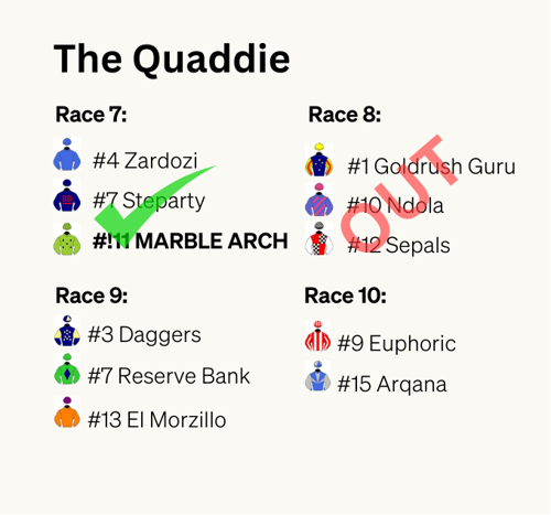 Unfortunately, Marc and team Archer our out of the Quaddie with his omission of R7 winner Marble Arch.