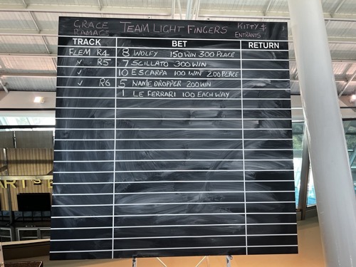 Race 6 is coming up. Team Archer had a great win in Race 4, with a handy return to the kitty. Team Light Fingers followed that in Race 5 with a return for their team.