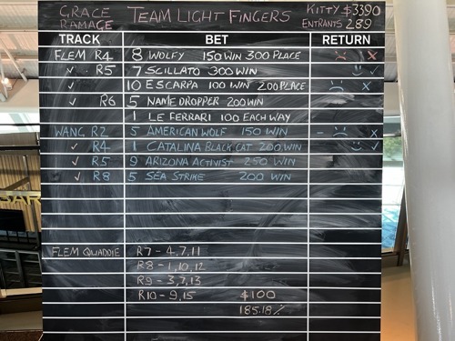All is not lost, both teams have bets to come with more racing at Flemington, and have money in the kitty for additional bets! Both teams are looking for a payout at this stage, how much depends on the last 2 races!