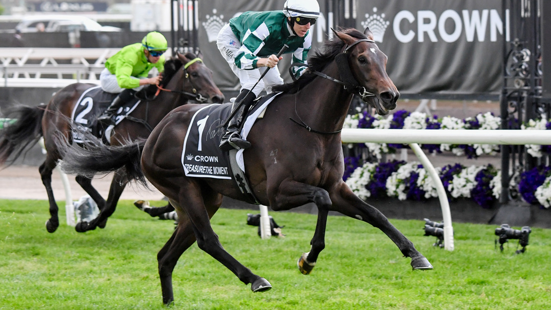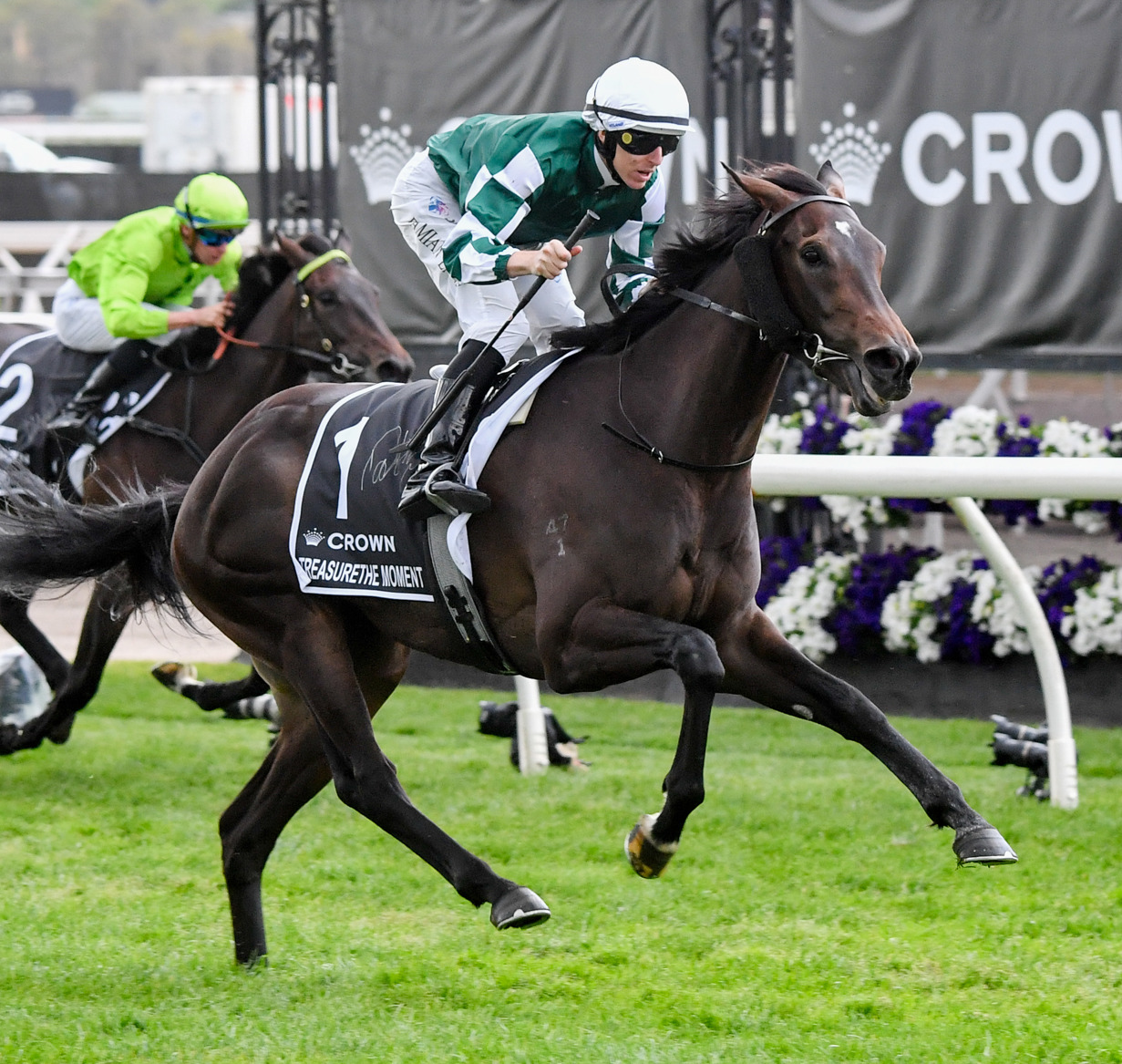 Just as she did in the traditional Oaks lead-up in the Wakeful Stakes (2000m) at Flemington last Saturday, Treasurethe Moment scored a comprehensive win in Thursday's Group 1 classic at 2500m for three-year-old fillies.