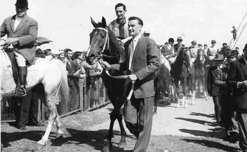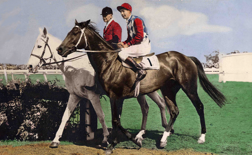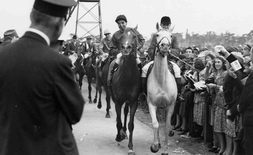 Hiraji became only the second grey to win the Melbourne Cup, after Toryboy (1865). He was bred in New Zealand, bought as a yearling in 1944 by businessman Fred William Hughes who owned the extensive Kooba Stud near Wagga Wagga. Two years later, Hughes acquired the sire, the French-bred Nizami, and bought him to stand at Kooba. Leading into the 1947 Melbourne Cup, Hiraji had strung together a run of minor placings in big races: the King’s Cup, Theo Marks Quality Hcp, Toorak Hcp, Caulfield Cup and Hotham Handicap. Hughes chose not to be on course on Melbourne Cup Day, despite a confident plea from Jim McCurley, the trainer. McCurley’s stables were near Sydney’s old Moorefield Racecourse. The Cup win was the first for popular jockey Jack Purtell, who won the Cup twice again, with Wodalla (1953) and Rising Fast (1954).