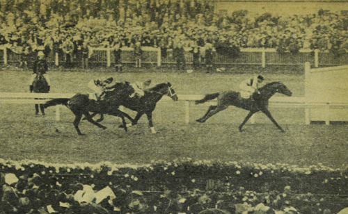 The lightly weighted Rimfire, at 70/1, was not expected to win the Melbourne Cup: his form had been poor, and he seemed lame the day before the race. But his owner-breeder wanted him to run: H. Guy Raymond was a VRC Committeeman who had revived the famous St Albans Stud at Geelong. Stan Boyden was his private trainer. For apprentice jockey Ray Neville, it was just good to ride in the Cup. The boy was due to turn 16 the following day and had been riding in races for only two months. Rimfire was his ninth race ride, and only his second winner. He picked up the late ride on the morning of the race. Rimfire won narrowly from Dark Marne, ridden by experienced jockey Jack Thompson, amid conjecture over the result: Thompson could not believe he had not won. It was the first time a photo finish camera had been used to decide a Melbourne Cup. This was the high point of Ray Neville’s riding career. And Rimfire never won another race after the Melbourne Cup.
